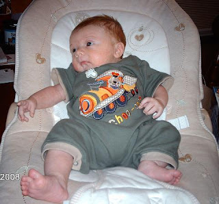 It's been a few days since I posted some photos. I admit, I slacked off in the photo department. Here are the most recent that I have. For those of you who aren't sure who is who in the photos...here you go....from top to bottom: Connor with Daddy, Connor with Grandpa Ebersole, Connor with Preacher at his baby dedication, Connor snuggling with Mommy, Connor with me outside, and Connor in his All American Boy outfit! :)